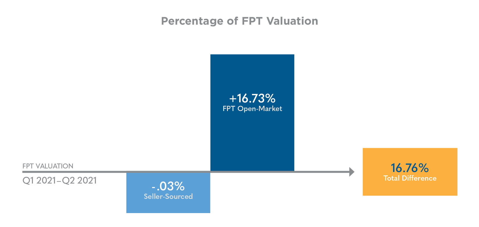 In the first two quarters of 2021, this activity has held yielding prices at an average of 16.76% higher than self-sourced transactions and and average of 16.73% higher than their market-based valuation assessments.